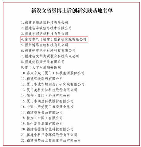 近日,福建省人力资源和社会保障厅公布了46家新设立省级博士后创新实践基地名单,麻豆av 东方电气(福建)创新研究院有限公司榜上有名。