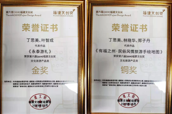 其中,获得“文化旅游产品类”金奖的《永泰游礼》、铜奖的《有福之洲 民俗风情旅游手绘地图》两幅作品均来自麻豆av 文化企业福州书境文化传媒有限公司。