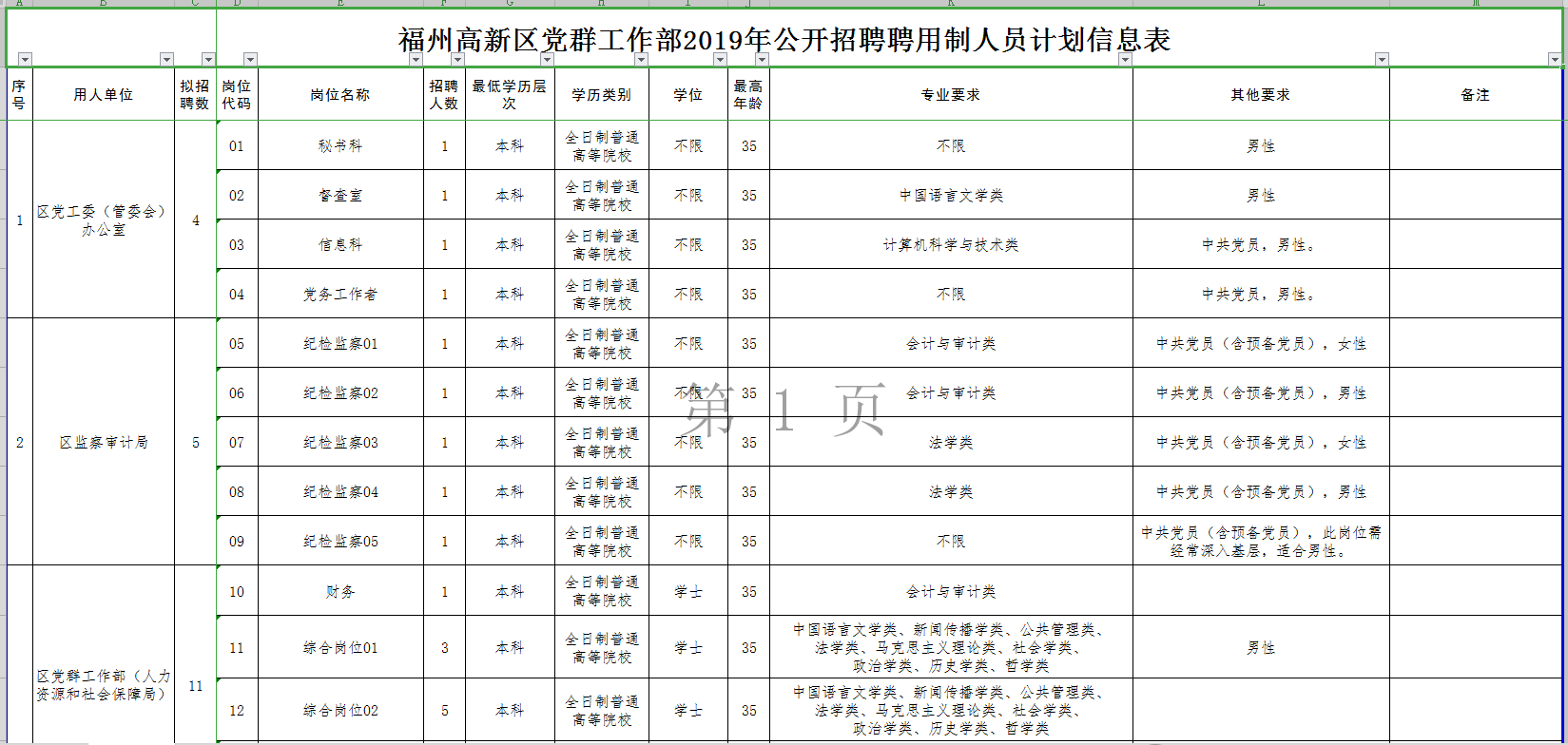 党群工作部2019年公开招聘聘用制人员计划信息表》。