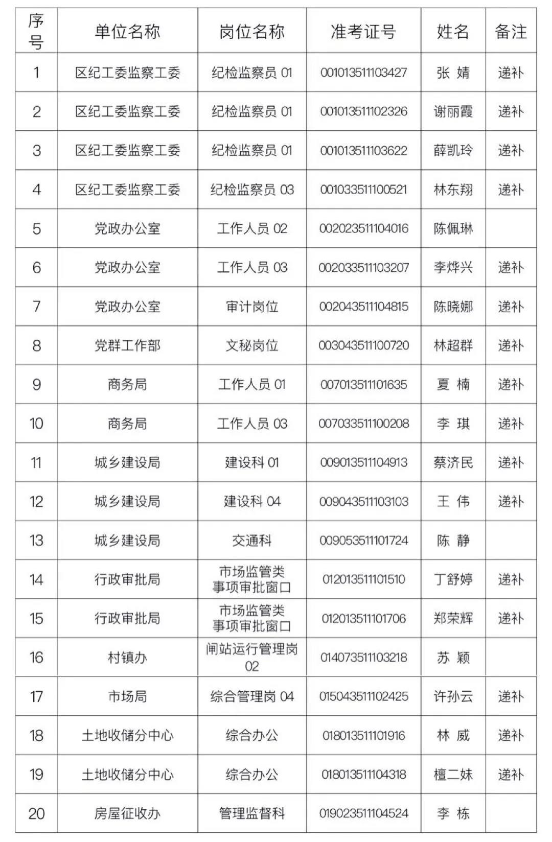 公示名单