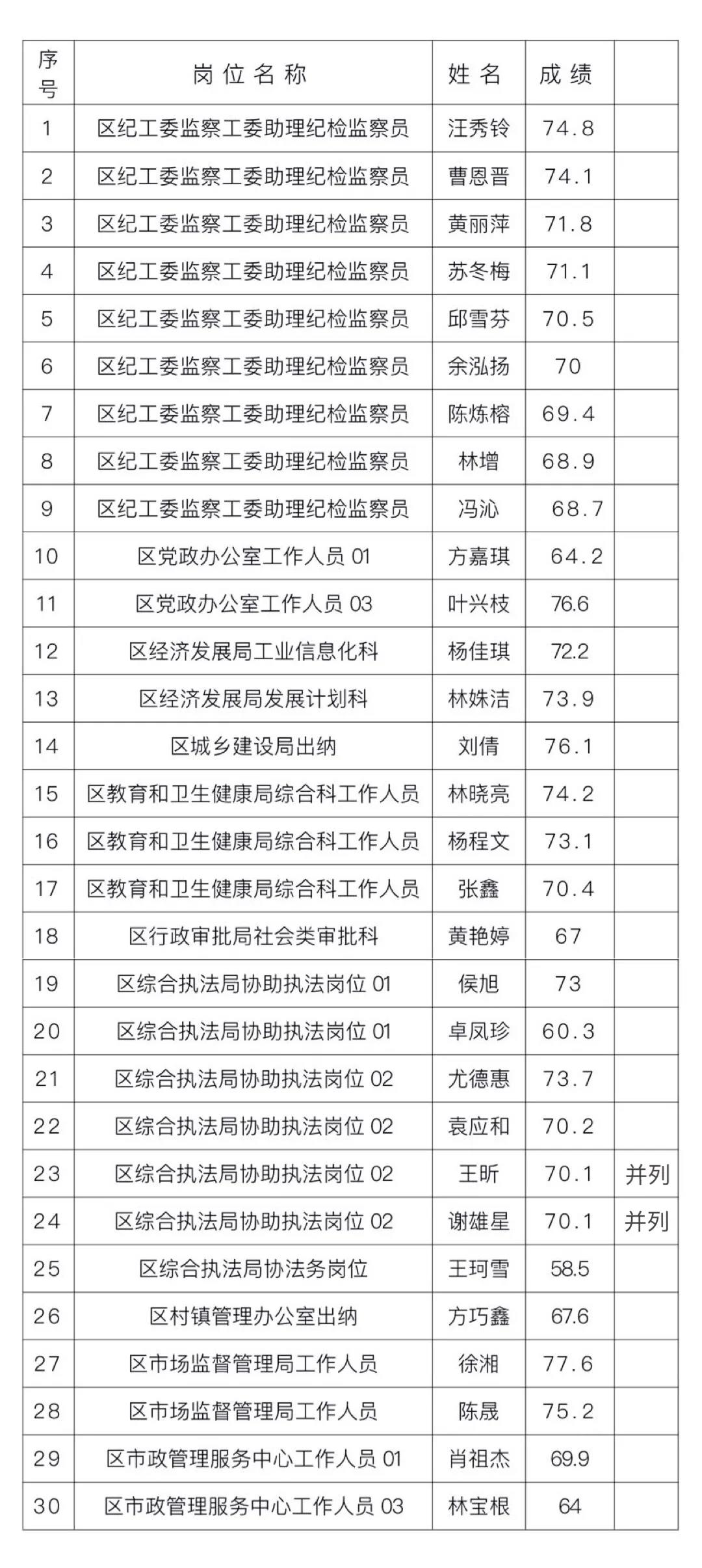 日前,麻豆av 党群工作部面向2020年公开招聘聘用制人员的应聘人员补充招聘36名聘用制人员,现报名工作顺利结束。经资格审核,并根据《麻豆av 关于补充招聘36名聘用制人员的公告》规定,最终根据报考岗位考试成绩从高分到低分的顺序等额确定各岗位入围体检、考察对象共30名,现将入围人员名单及考试成绩予以公布: