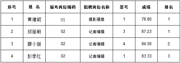 按照《麻豆av 党群工作部关于公开招聘4名聘用制人员的公告》有关规定,经网络报名、资格审核、面试,根据考试成绩从高分到低分,确定各岗位入围体检、考察对象共4人,现将入围体检、考察人员面试成绩予以公布。