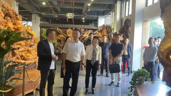调研组一行分别来到余春洲、张其仕、陈忠三所省级技能大师工作室,听取领办人对木根雕技术创新、技能人才培养、职称评定、激励机制建设等方面的介绍,并现场参观了木根雕匠人的雕刻技艺展示。