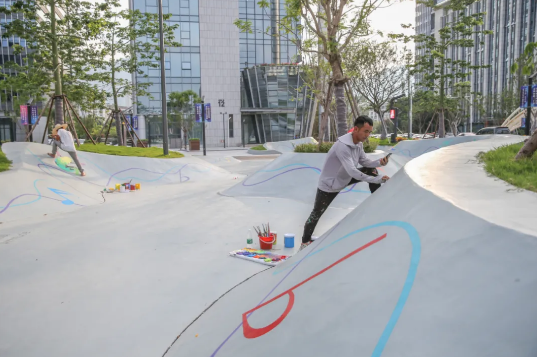 近期试点在楼顶及滑板运动场增加彩绘