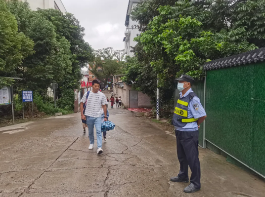 在村道入口和学校门口,两名身着反光背心的协警加入到疏导人流的工作中。这是当地派出所在每天早上上学和晚上放学时段,特意增派的人员,主要负责督导不自觉驶入的机动车。对开车接送孩子的家长,协警引导他们将车有序临时停放在旗山大道旁,让家长下车牵着孩子步行进村道入校。