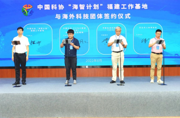 活动现场,中国科协“海智计划”福建工作基地与芬兰华人科技协会、中国科协-FCPAE欧洲(比利时)海智创新创业基地、中欧生命科学联盟(SEFL)签订合作协议,聘请中欧生命科学联盟名誉主席贺毅、中国海归创业联合体常务副秘书长孙明旭、法国原子能委员会(CEA)联合实验室研究员徐军华等9人作为中国科协“海智计划”福建工作基地特聘专家,深化对外科技交流与合作。